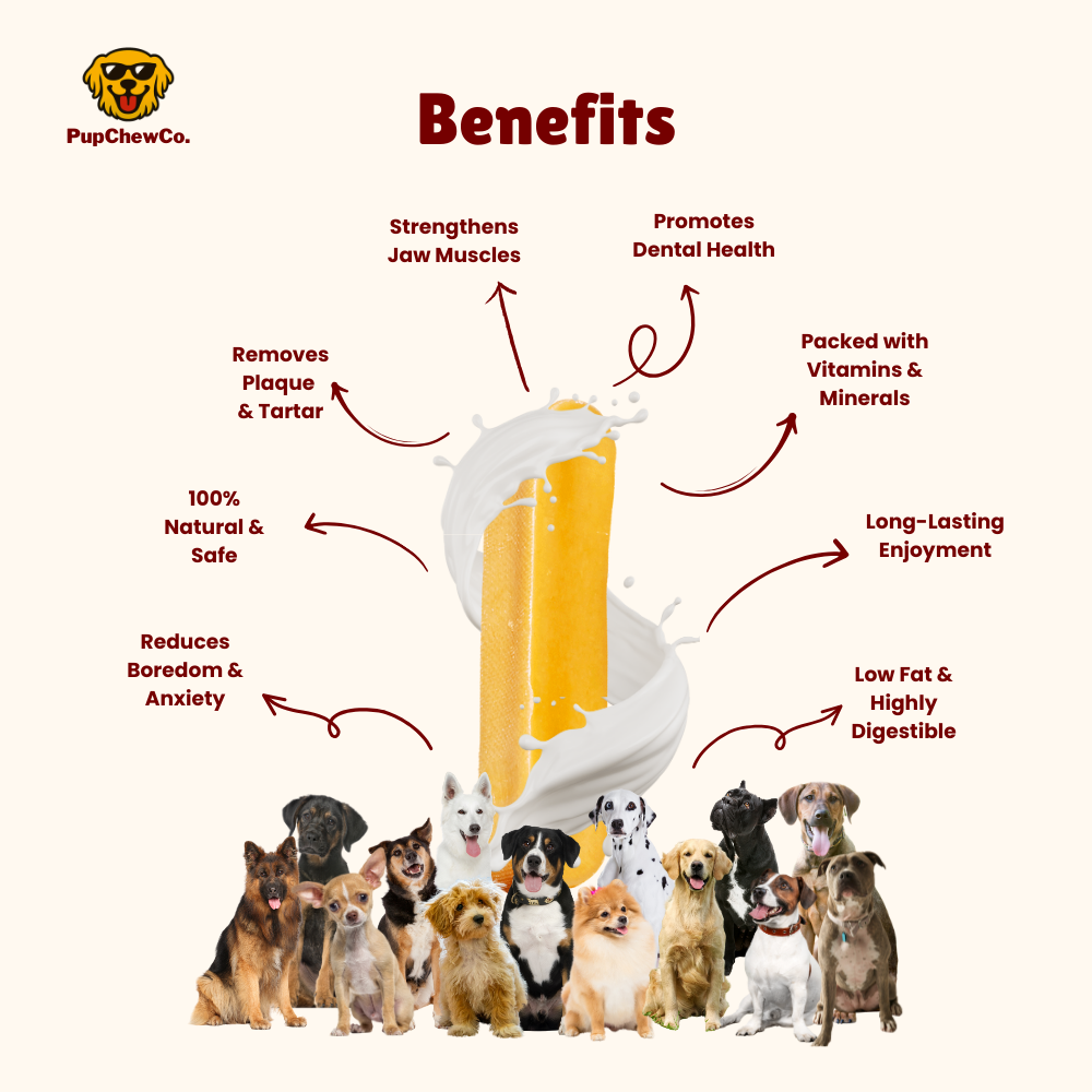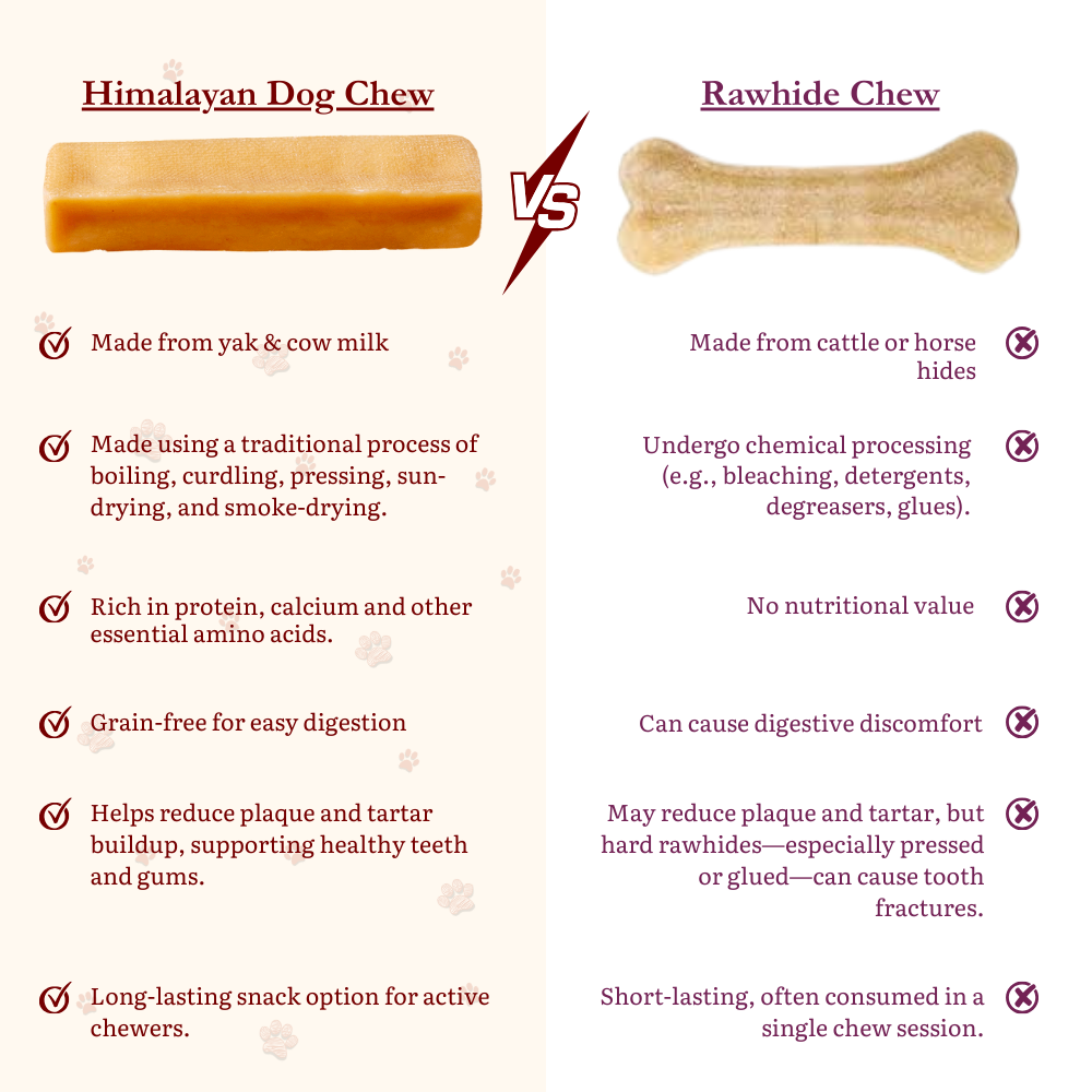 Unlike rawhide or synthetic chews, Himalayan Dog Chews are 100% natural, long-lasting, and easily digestible. They’re rich in protein and calcium, free from grains, gluten, preservatives and artificial additives.